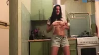 The video starts with a stunning brunette entering the kitchen, her dark brown locks cascading down her back as she confidently walks towards us.Her eyes sparkle with a mix of mischief and anticipation as she prepares for her teasing performance.She turns up the volume on some sultry music, and with every beat of the drum, you can feel the excitement building in the air.As she begins to undress, you cant help but be entranced by each piece of clothing that comes off.First, its her top a simple, yet elegant, white blouse.She untucks it ever so slowly, revealing her lacy black bra beneath.Your heart races as her hands glide across the fabric, teasing you with what shes about to show.Next is her skirt.As she slides it down, your eyes follow the line of her toned and shapely legs that lead you straight to her ass, clad in a pair of highwaisted red panties.Her fingers dance across her curves, accentuating her body in ways that make your mouth water for more.The final act begins with her taking off her shoes.The sensuality in her every movement is undeniable as she unhooks the straps on her heels.She takes them off one by one, giving you a tantalizing display of her lovely, tanned feet and dainty toes.As she stands before you completely undressed, the air thick with desire, its clear that this is more than just a striptease.Your eyes rove over her beautiful, sunkissed body as you take in every curve, every crevice.You can feel your own body responding to her tantalizing show your cock growing harder by the second.And then, just when you think its all over, she bends down and starts playing with herself.Her fingers glide between her legs, tracing the shape of her lovely folds before finally reaching for that one spot.The moans that escape her lips are music to your ears, making your own breathing heavier with each sigh.Her eyes meet yours in that moment, a challenge clear in their depths.She knows exactly what shes doing and you know you want it just as badly as she does.You step closer, wanting to bury yourself within the heat of her lovely body, the promise of release only seconds away.The anticipation is palpable, as the video fades with one final tease before they inevitably come together.
