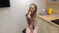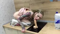 In a dimly lit, intimate kitchen, the Tattooed Temptress stood at the edge of the countertop, her dark braids cascading down her shoulders.Her tattooed body was clad in nothing but socks and stockings, which only emphasized the beautiful array of intricate tattoos covering her body, drawing attention to every curve and muscle.The Temptress had a strong and commanding presence about her you knew that she was going to take control and dominate this scene.Her eyes met your gaze, filled with unspoken desires and a fire that threatened to engulf the whole kitchen in passion.Your hands wandered over her body, unable to resist the temptation, and found their way to the small of her back, where her stockings ended, and her tattooed skin began.You both moved in unison the Tattooed Temptress slowly climbed onto the countertop, riding the countertop dildo with fierce determination.The sensual motions of your lover only fueled the heat between you, as you watched her ride this fake cock, mimicking every movement of a real man.Her hips thrust against it in an unspoken plea for satisfaction you could feel the moisture between your own legs growing from the sheer fun of her passion.Her plump lips were wet and parted slightly, eyes glazed over with desire.The Tattooed Temptress had her head thrown back, one hand gripping a nearby wall for support as she impaled herself on this dildo, fucking it just as she would you, if you were there to fulfill her every need.Your hand went between her legs, finding her sensitive clit as your other hand found its way up her tattoed stomach, cupping and massaging one of her breasts, kneading the fleshy mound in time with the rhythm of her motions.The air was thick with the scent of her arousal the stench of sex and sweat that comes only from this kind of passionfilled encounter.You knew that to let her go unrewarded would be a crime against all that you held sacred, so as she continued riding that countertop dildo with a desperate hunger, you could feel yourself growing hard, knowing what she wanted most.Your hands roamed down her tattooed body, gripping the firm muscles in your palm, pulling her closer to you.The Tattooed Temptress groaned, anticipating the pleasure that would soon fill her, as your cock sought out her opening and pressed against her slick walls.You were ready to give her everything she wanted and more, just like the fantasy shed created for herself with the countertop dildo.As you fucked her from behind, her back arched, allowing your body to move with you, meeting every thrust with equal fervor.Her breathing became heavy, moans turned into pants, and finally, as you both reached that elusive peak, you filled her with a rush of hot cum.The Tattooed Temptress cried out in pleasure as the countertop dildos place was taken by your eager manhood, fulfilling her fantasies beyond any limits she thought possible.The scene unfolded with passion and desire the intensity was felt in every stroke, every touch, and every sigh.The Tattooed Temptress rode the countertop dildo in a sexually charged eruption of heat, and it was only your presence that completed the scene, leaving an indelible memory etched into the walls of that kitchen forever.